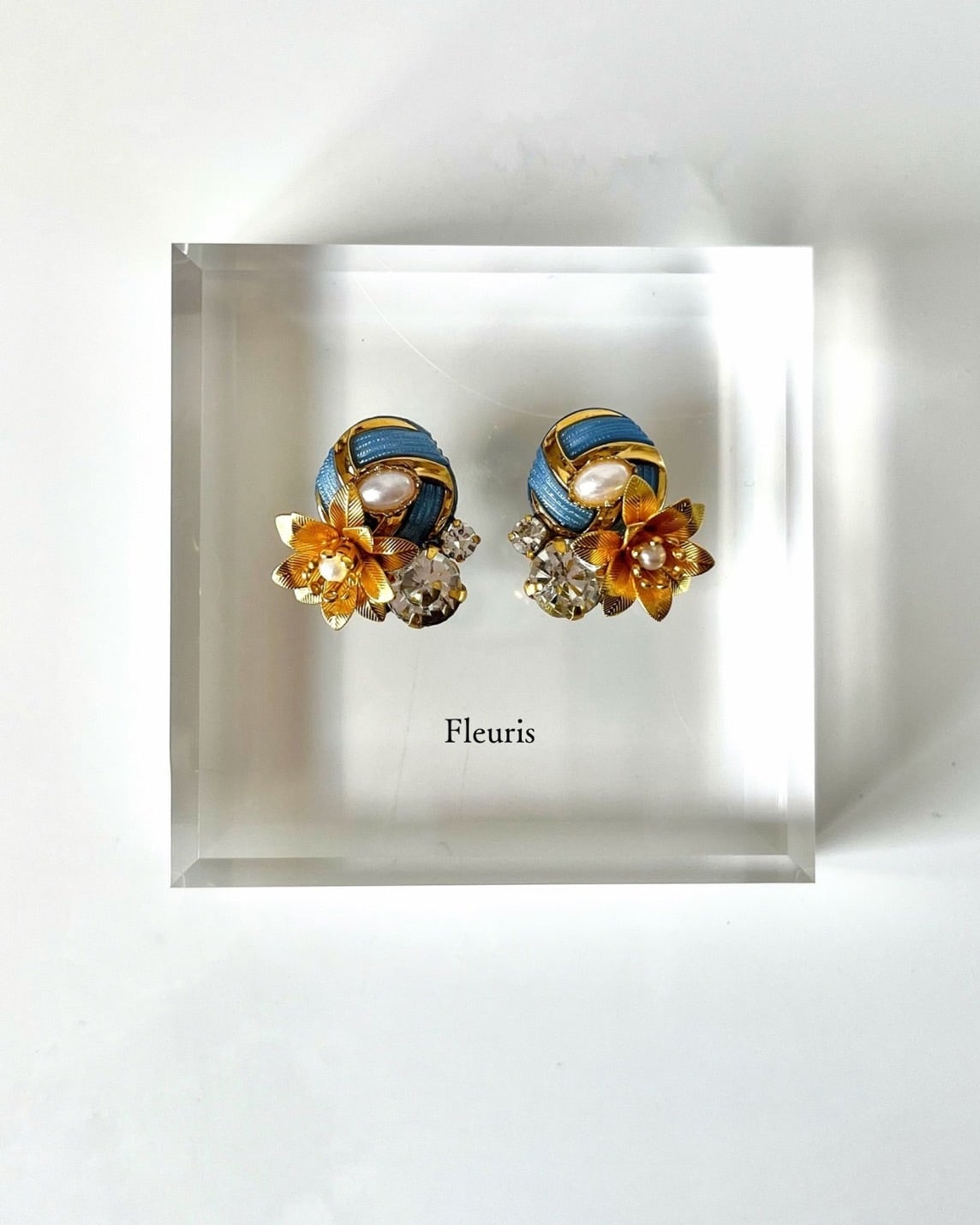 繊細なフラワー真鍮とガラスストーンを重ね