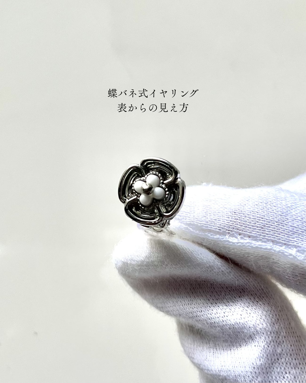 ・イヤリングは蝶バネ式で、ずれにくく痛みも少ない人気の仕様