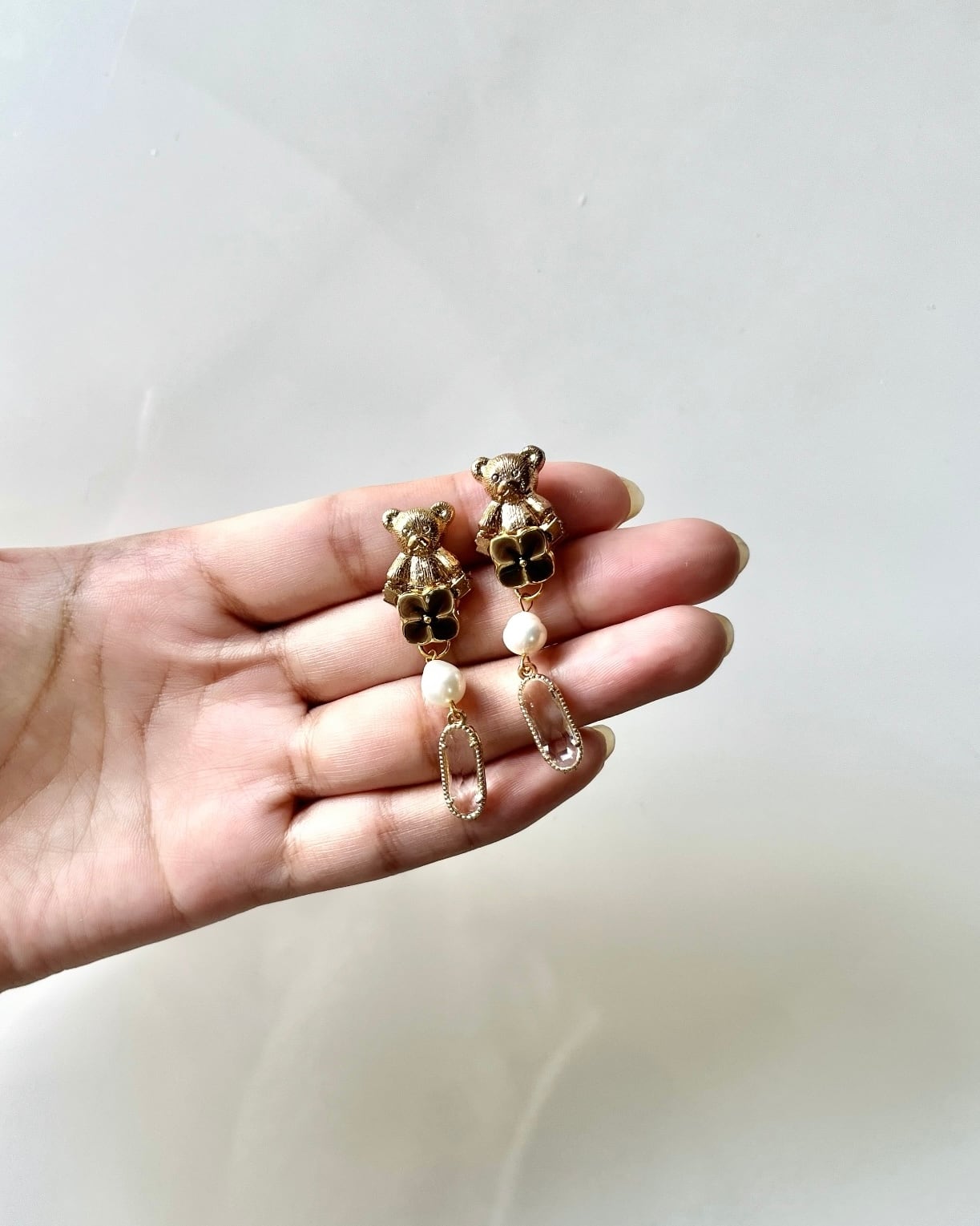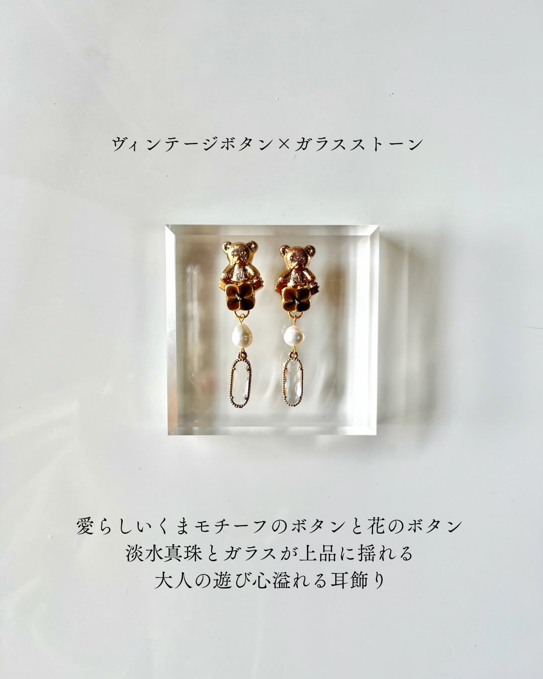 ・イヤリングは蝶バネ式で、ずれにくく痛みも少ない人気の仕様